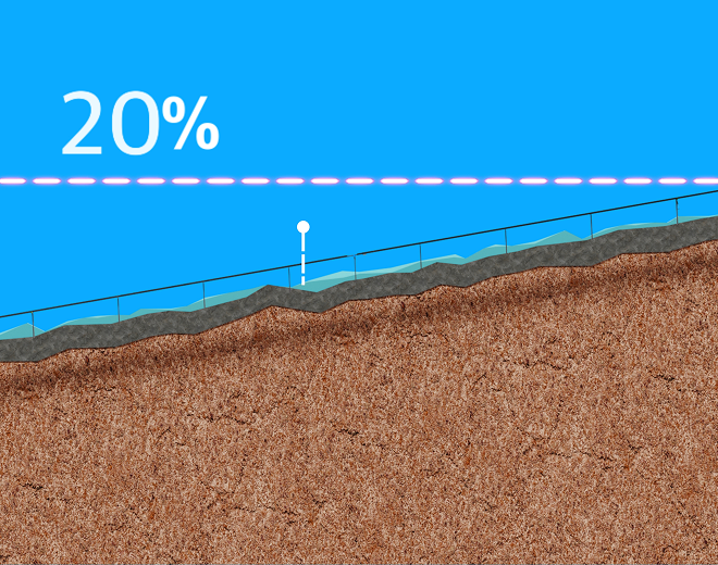 Up to 20% N S slope without grading